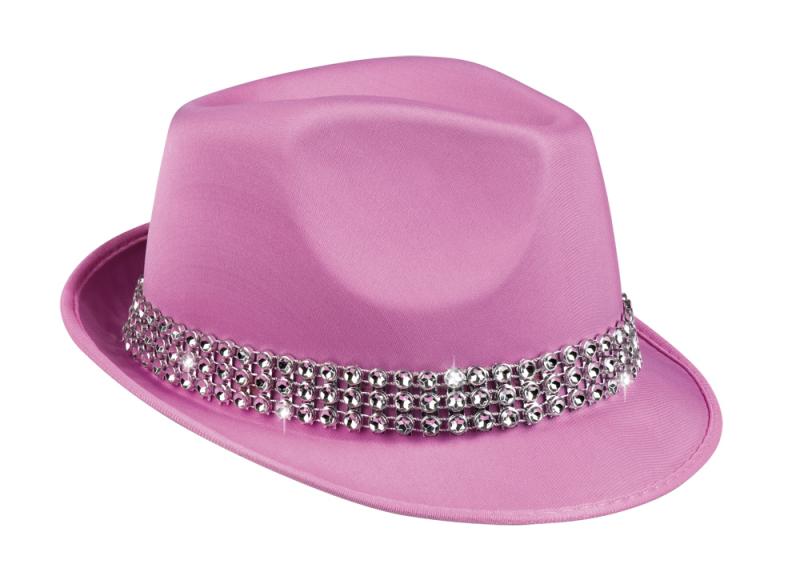B04119 rosa Hut Popstar Diamond Trilby Discohut Partyhut Hippiehut