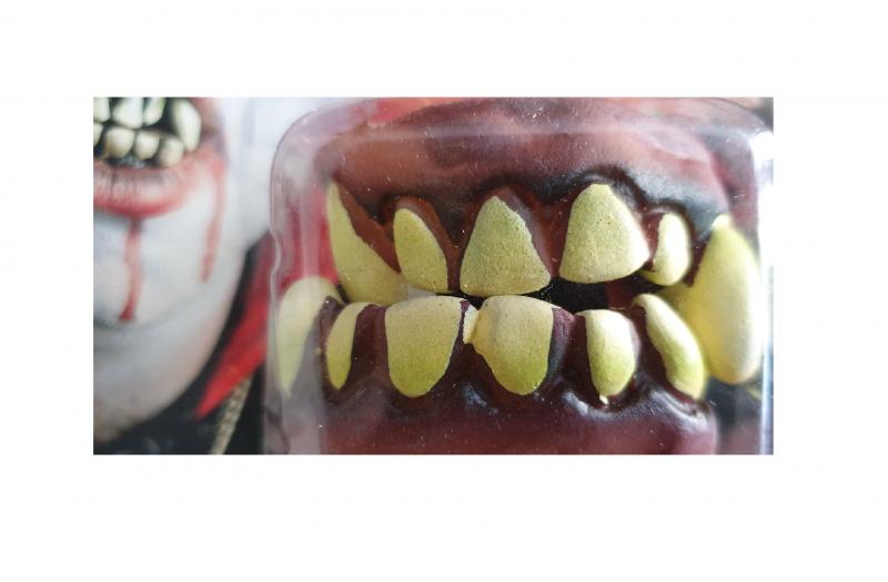 Zähne bestehen aus 2 Teilen: Zähne für oben und unten ohne weiteres Zubehör.