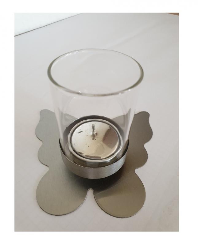 Teelichthalter Schmetterling, stehend mit Glas Einsatz.