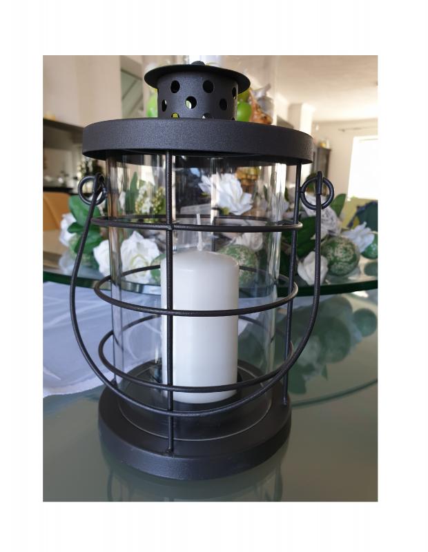 Laterne besteht aus 2 Teilen:Glas-Innenehälter und Laternengestell ohne Kerze und Deko.