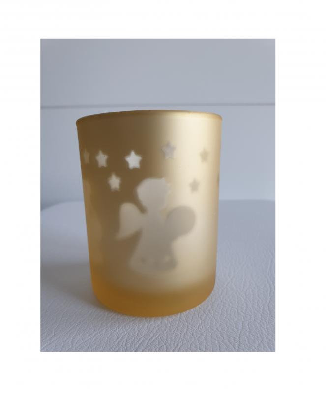 Teelicht mit Motiv Engel aus Glas.
