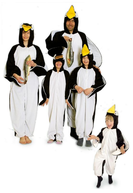 Der Pinguin Overall besteht aus einem weichen Plüsch Stoff und ist an Armen und Beinen mit einem Gummizug versehen.