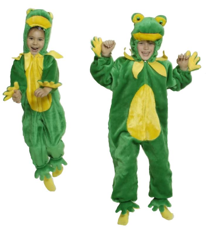 Der Overall aus dickem grünen Plüsch mit gelben Brust-Einsatz ist ausgestattet mit einem Reißverschluss und einem gelben Kragen.