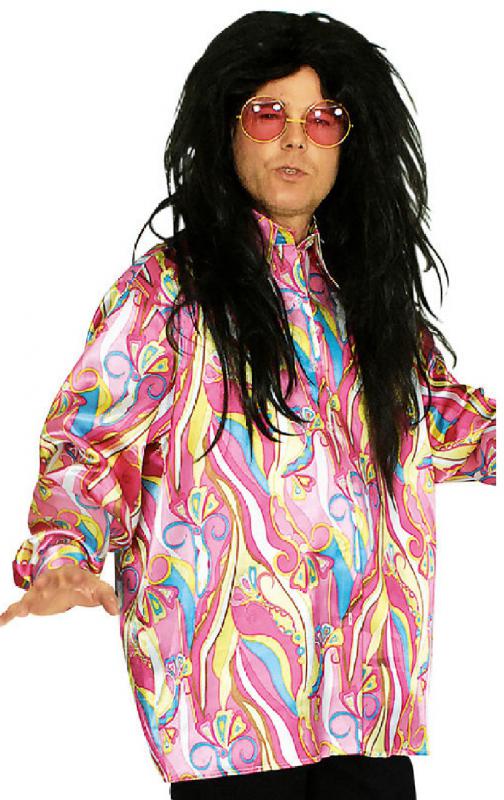 70er Jahre Hemd in tollen Farb-Kombinationen aus leichtem Satin-Stoff.