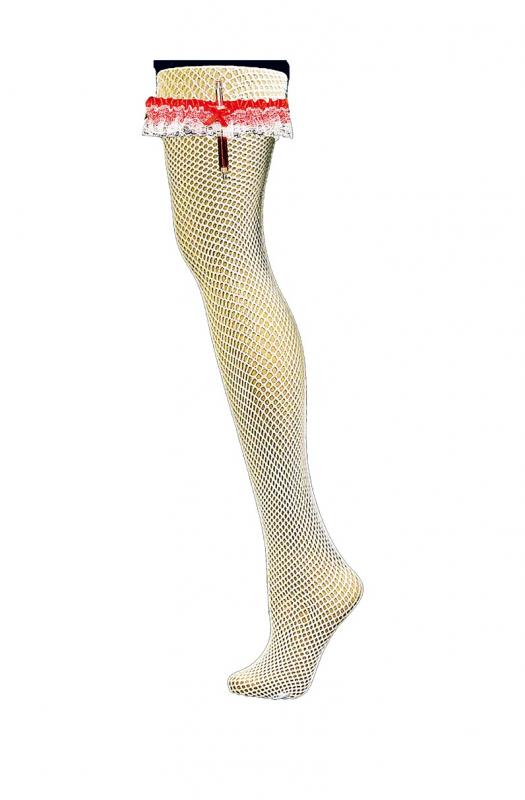 K84250753-0-L-XL weiß Damen Netzstrumpfhose Kellnerin Gr.L-XL