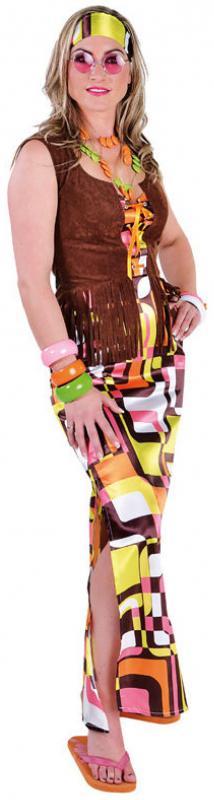 Das lange Kleid besteht aus festem Satin in vier, sehr schönen, hellen Farben.