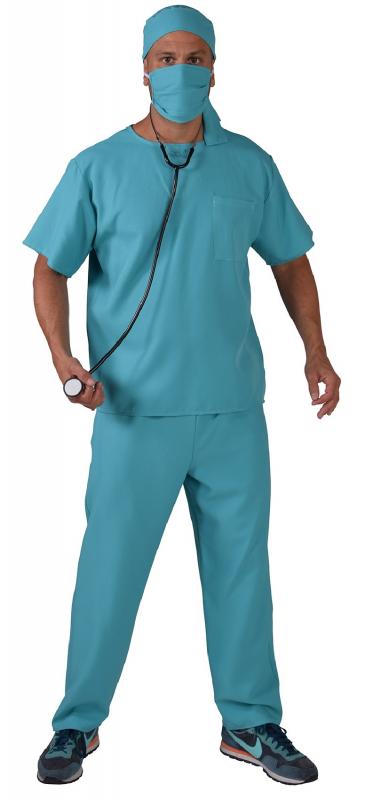 Kostüm besteht aus 4 Teile:Oberteil ,Hose ,Mundschutz und Haube ohne Zubehör und Schuhwerk.