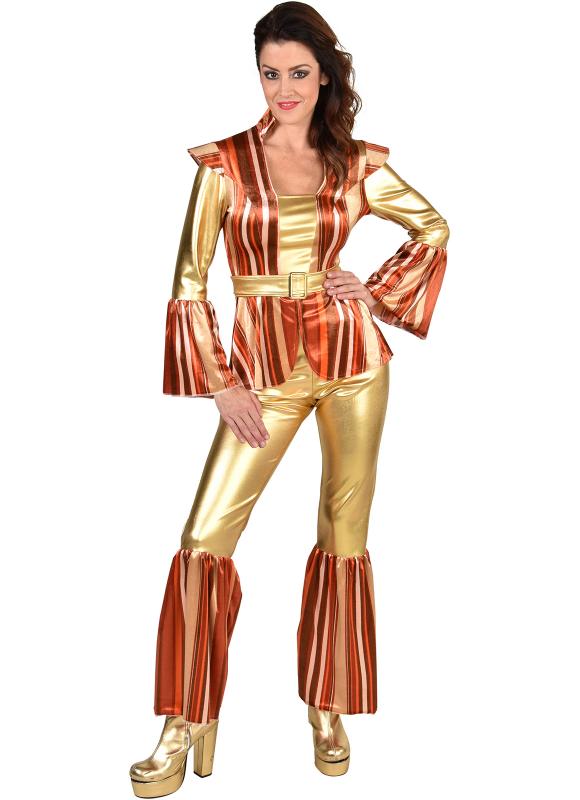 M222165 braun-gold Damen Hippie-Kostüm 3tlg. Bluse-Hose-Gürtel