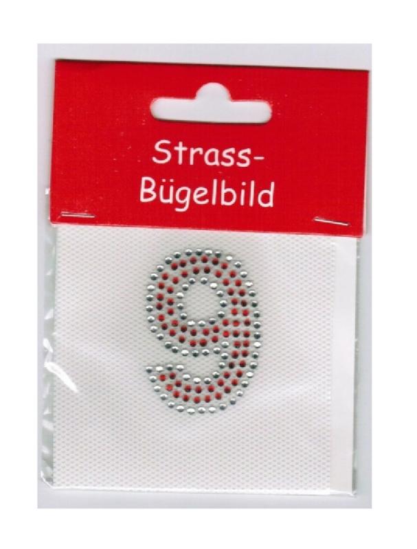 Strassbügelbild, silber-rot.