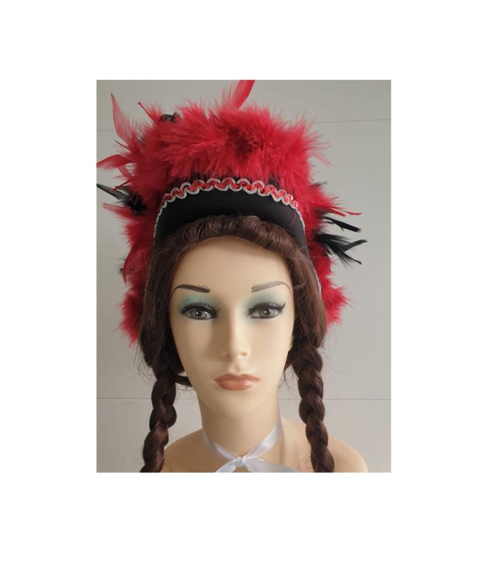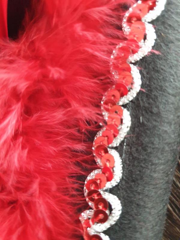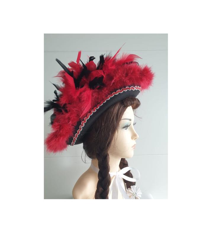 "Schwarzer Funkenhut mit rot-silberborte,roten Marabu und schwarz-rot mix Federboa".