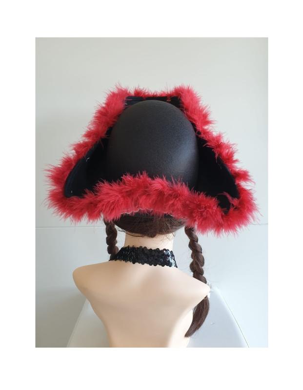"Schwarzer Funkenhut mit rot-silberborte und roten Marabu".