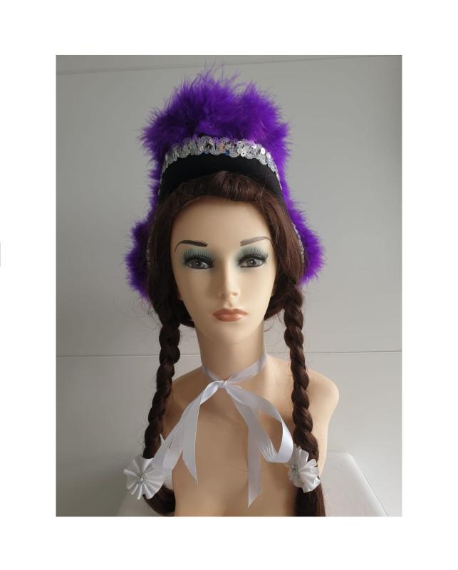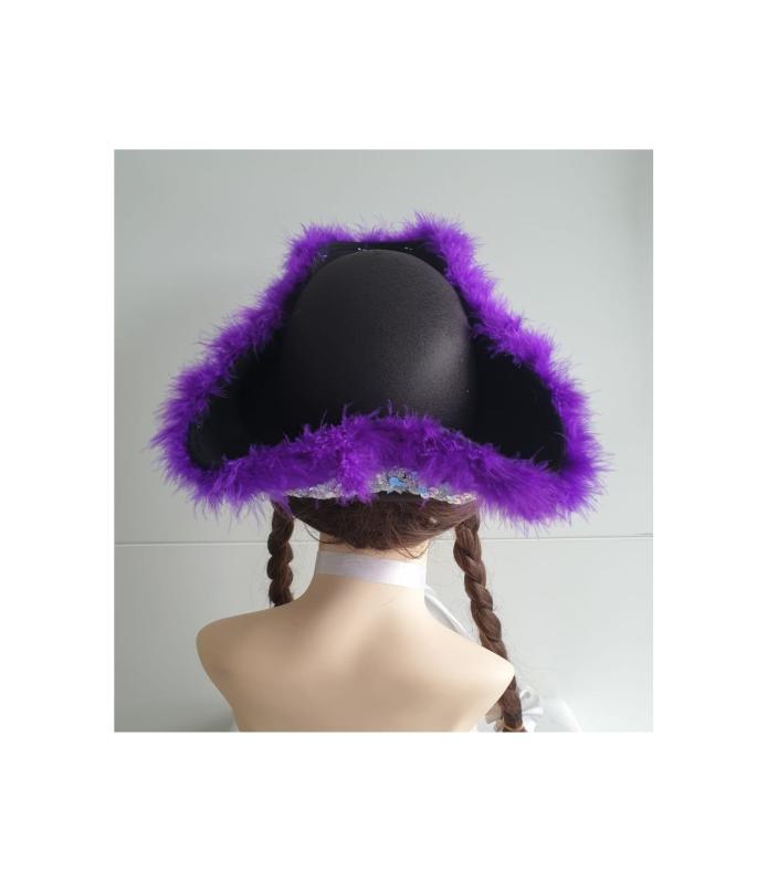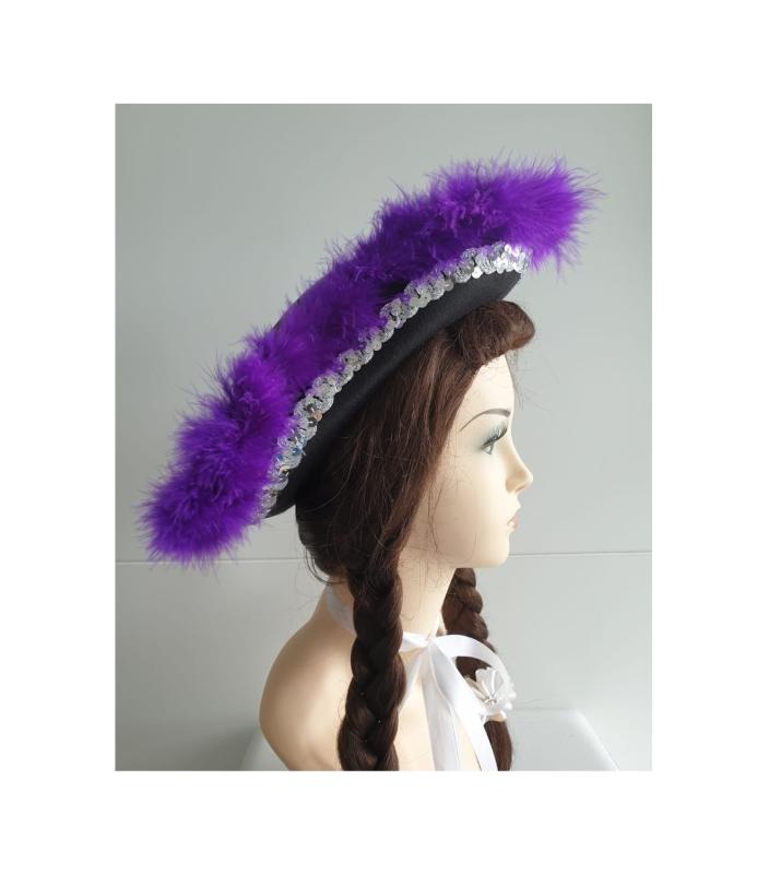 "Schwarzer Funkenhut mit silberborte und lila Marabu".