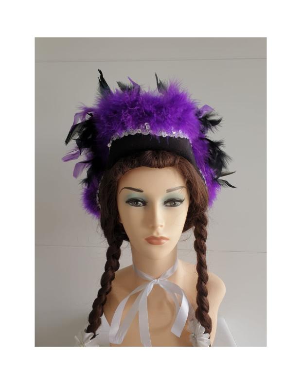 "Schwarzer Funkenhut mit silberborte,lila Marabu und Federboa schwarz-lila mix".