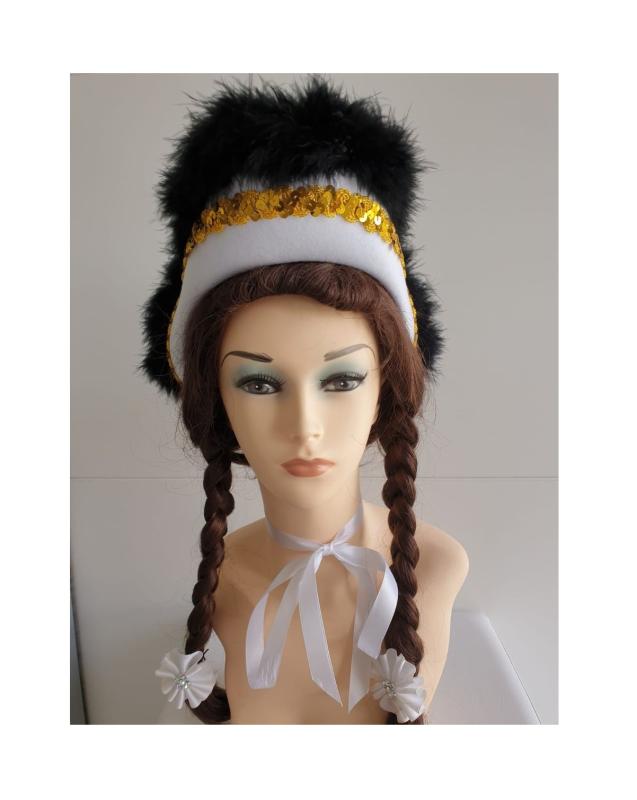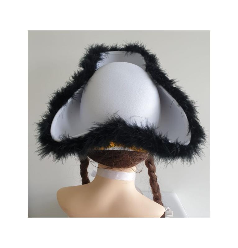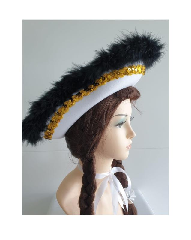 "Weißer Funkenhut mit goldborte und schwarzen Marabu".