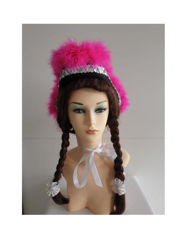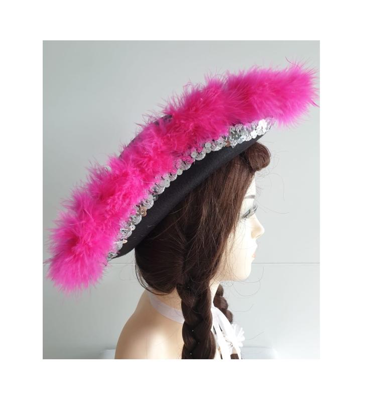 "Schwarzer Funkenhut mit silberborte und pinken Marabu".