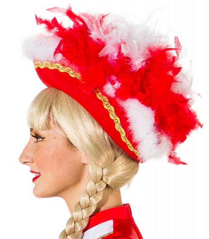 "Funkenhut mit Goldborte,rot und rot-weißer Boa".