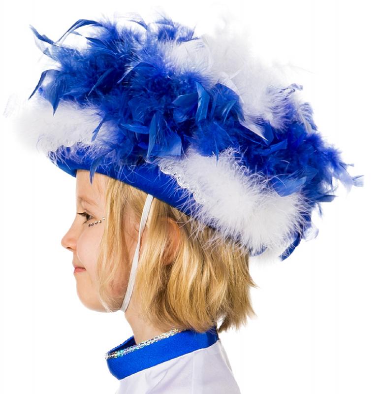 "Funkenhut mit Silberborte,blau und blau-weißer Boa".