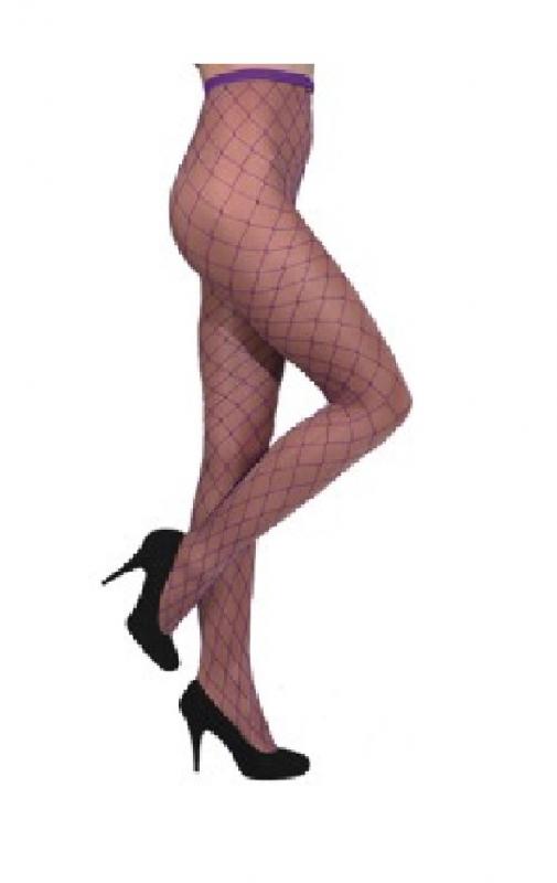 O41027-19 lila Damen groß-Netz Strumpfhose Hippiekleid