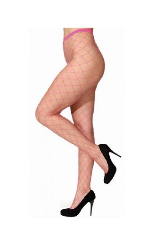 O41027-20 neonpink Damen groß-Netz Strumpfhose Hippiekleid