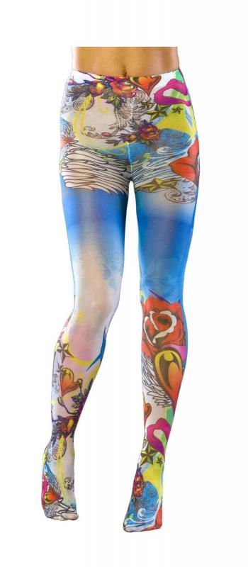 Damen Hippy Strumpfhose,blau-bunt.