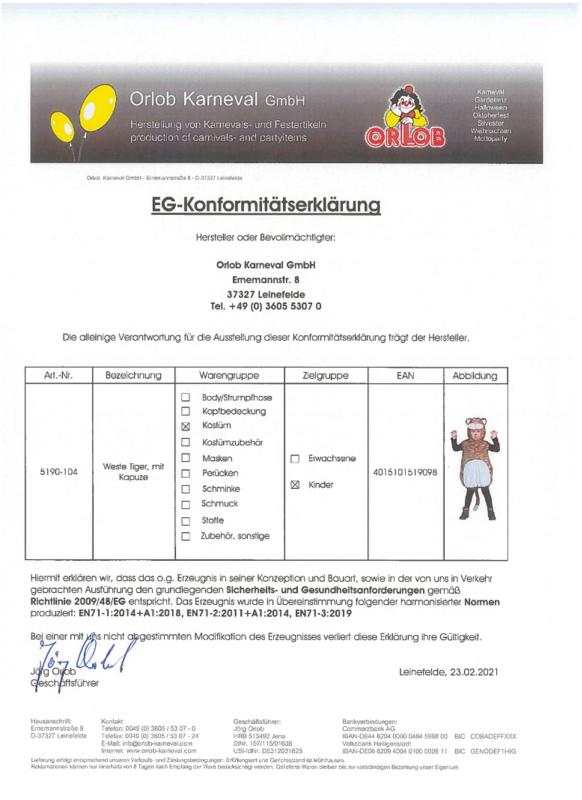 "Tiger-Weste mit Kapuze nur Größe 104".