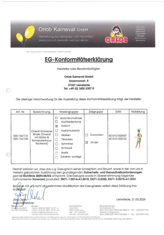 Kostüm besteht aus 3 Teile: Overall,Mütze und Rucksack ohne Zubehör und Schuhwerk.