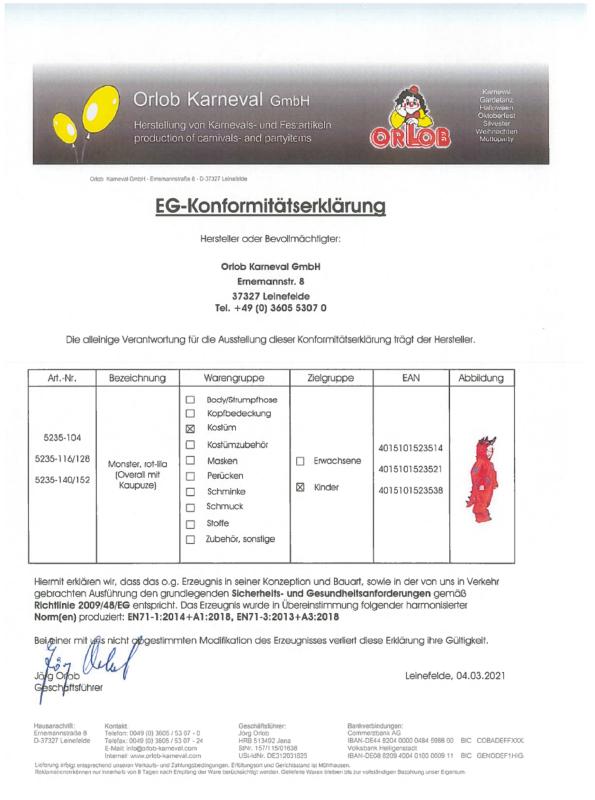 Kostüm Neu, mit Etikett, Material 100 % Polyester in 2 Größen erhältlich.