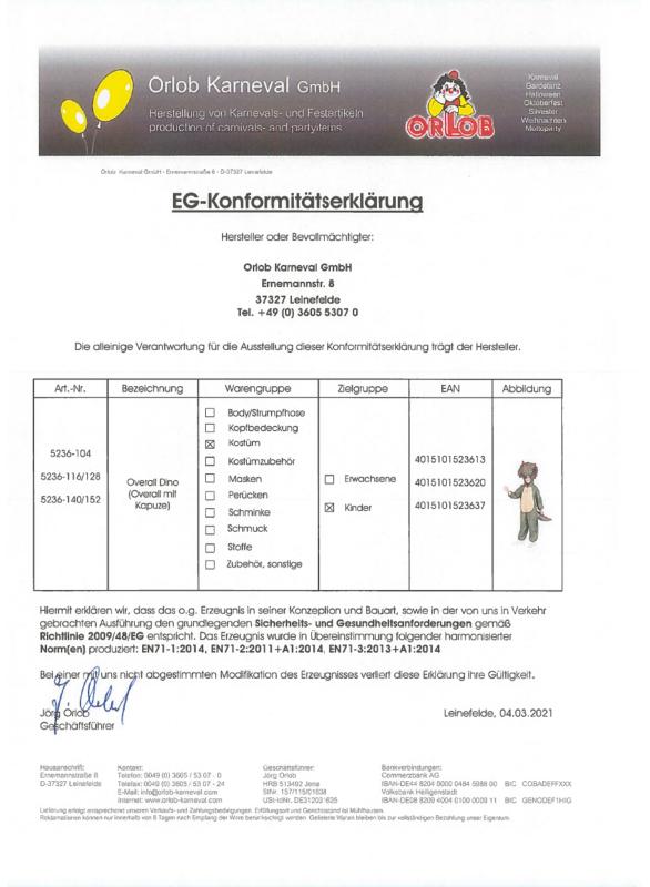Kostüm Neu, mit Etikett, Material 100 % Polyester in 3 Größen erhältlich.