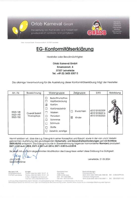 Kostüm neu, mit Etikett, Material 100 % Polyester in 3 Größen erhältlich.