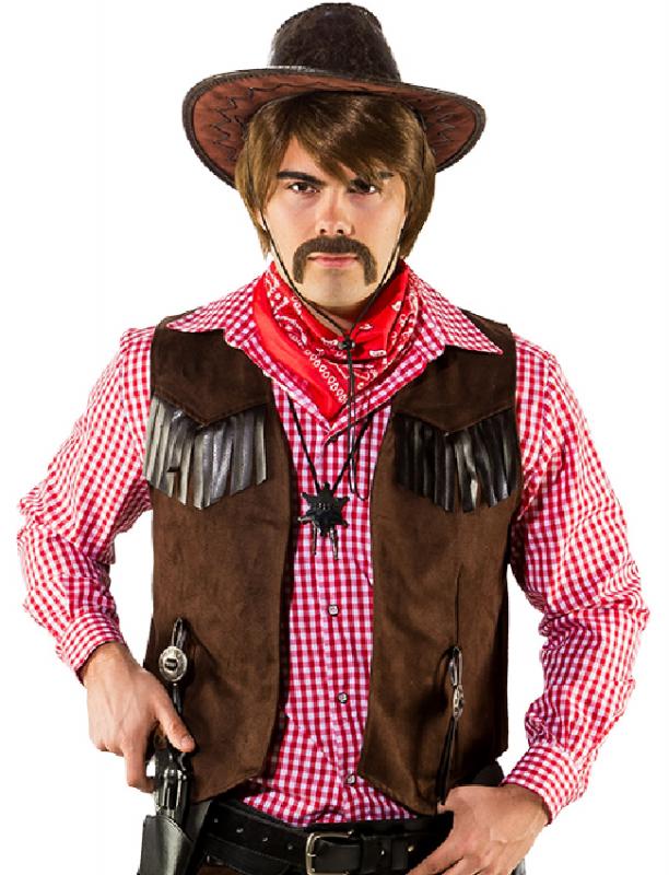"Herren Cowboy-Weste, braun Wildlederimitat".