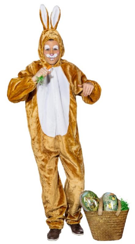 O826-175-190 braun-weiß Damen Herren Hasen Kostüm Bunny Overall Gr.175-190