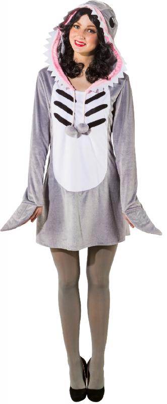 "Sexy Hai Kleid mit Rückenflosse,grau-weiß".
