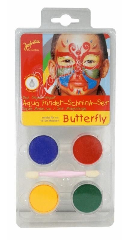 Aqua Kinder-Schmink-Set " Butterfly-Schmetterling " (wasserlöslich), grün-gelb-rot-blau".