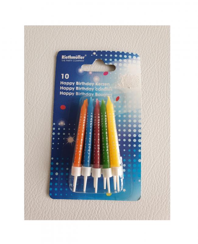 Kerzen mit Happy Birthday Schriftzug von Riethmüller.