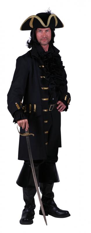 Herren Kostüm besteht aus einer langen,ausgestellten Jacke mit goldfarbenden Knöpfen.