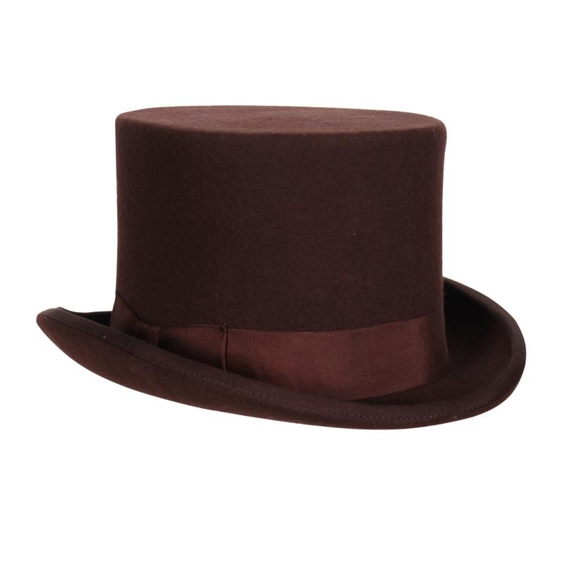 Dieser Zylinder aus 100% Wollfilz ist mit Satin aus 100% Polyester gefüttert und hat ein Hutinnenband.