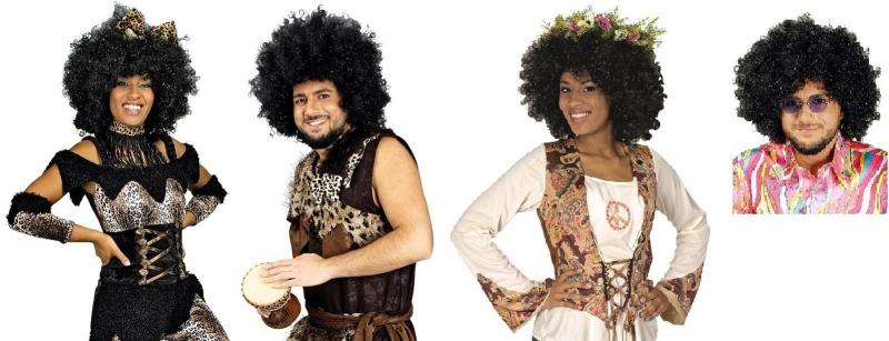 Locken-Perücke schwarz (geeignet für Afrika,Afrikaner,Dschungel,Neandertaler,