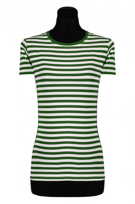Damen Ringelshirt kurzarm-tailliert, grün-weiß.