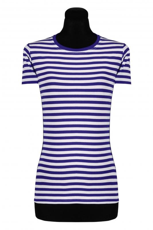 Damen Ringelshirt kurzarm-tailliert, blau-weiß.