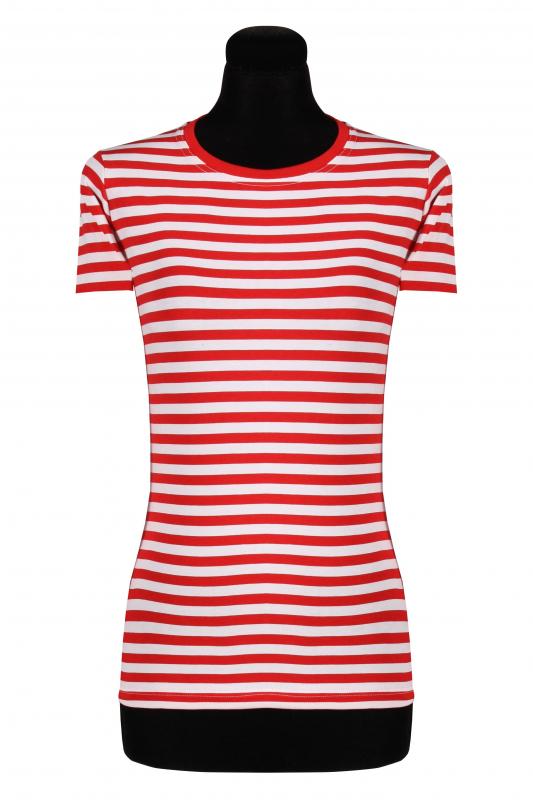 Damen Ringelshirt kurzarm-tailliert, rot-weiß.