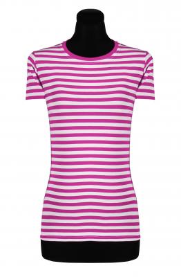 Damen Ringelshirt kurzarm-tailliert, pink-weiß.