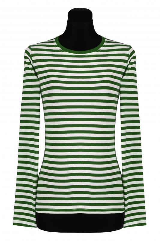 Damen Ringelshirt langarm-tailliert, grün-weiß.