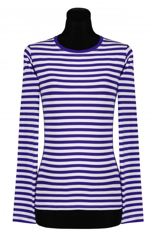 Damen Ringelshirt langarm-tailliert, blau-weiß.