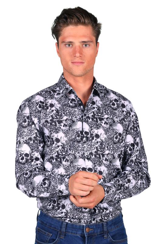 Herrenhemd Skull, schwarz-weiß.