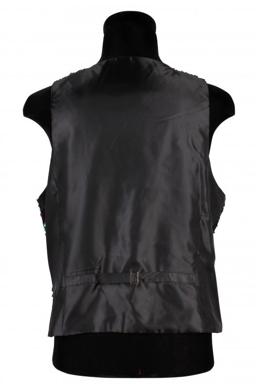 Weste hinten mit schwarzen Rücken zum Binden und vorne mit 2 Taschen und vielen bunten quadratischen Pailletten.