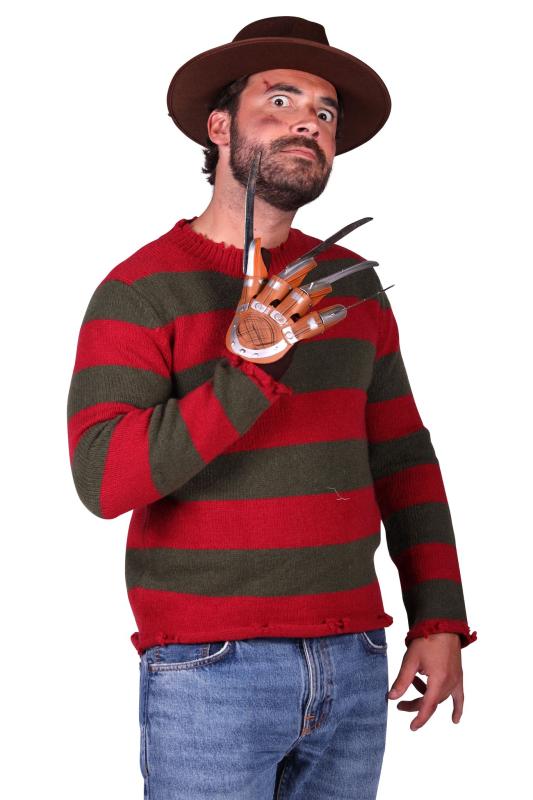 Kostüm besteht aus 3 Teile:Pullover rot-grün Strick,Scherenhand und Hut (braun) ohne weiteres Zubehör und Schuhwerk.