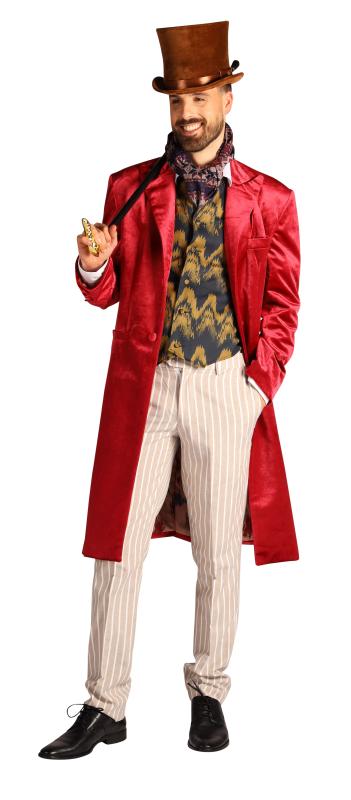 Schokoladenfabrik Besitzer,rot-beige-braun.