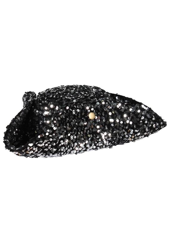 "Hochwertige Pailletten Dreispitz,silber-schwarz".