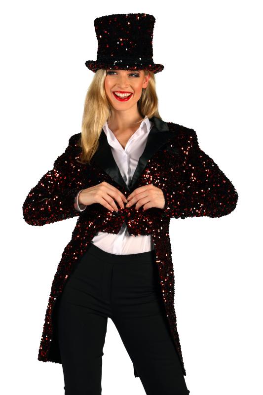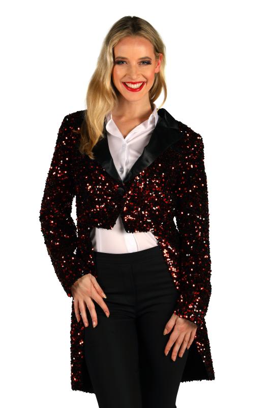Pailletten Frack-Jacke, rot-schwarz.