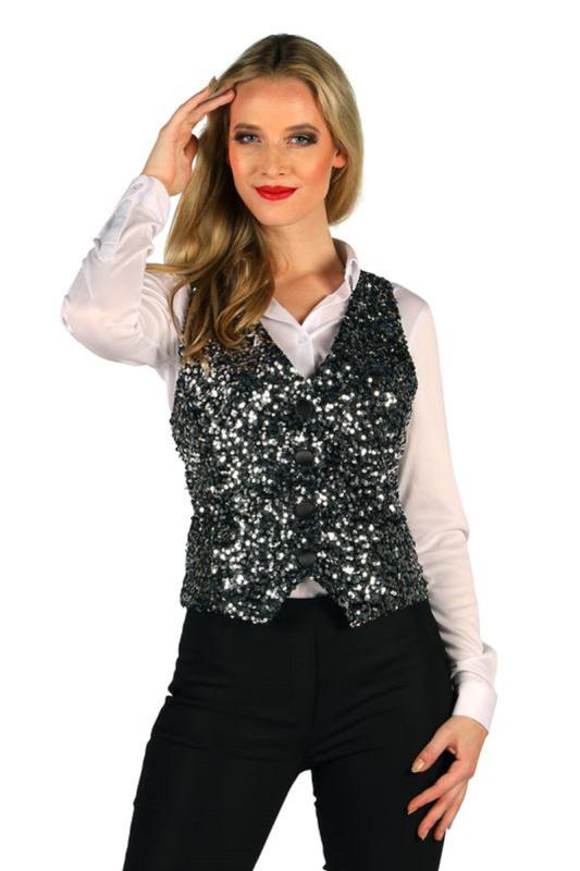 Damen Pailletten Weste, silber-schwarz.